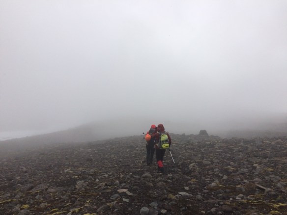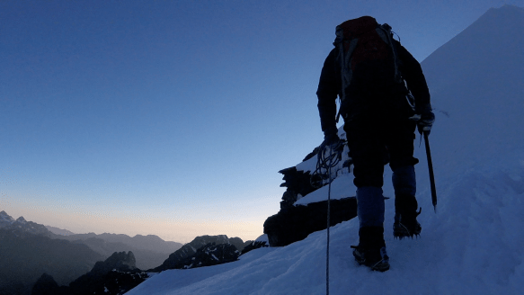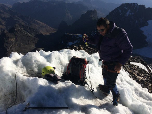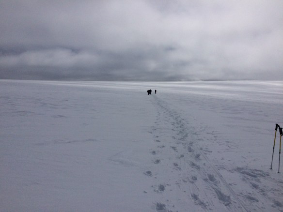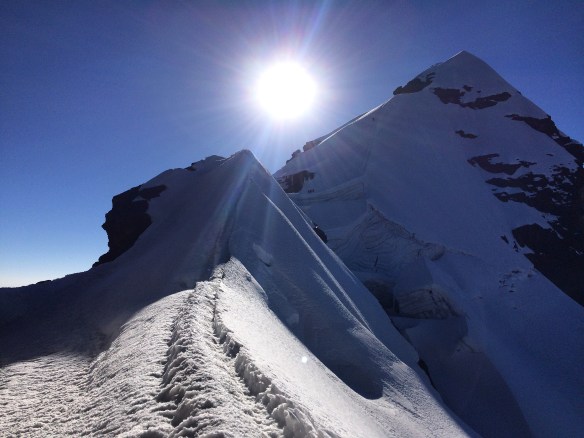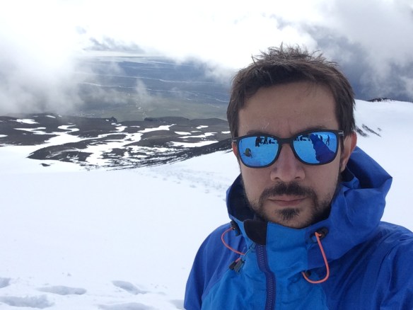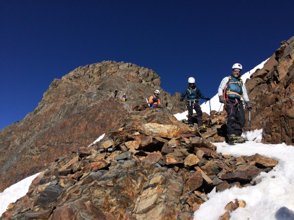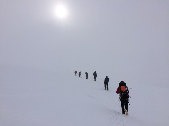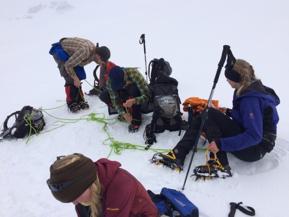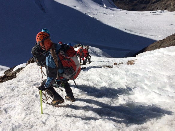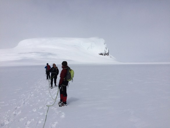 Cruzando el glaciar para iniciar el descenso.