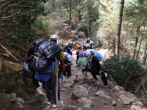 Namaste! Antes de continuar, olvide la palabra “independiente” del título de esta guía. Durante el trekking al Campo Base del Everest, usted estará totalmente en la dependencia del pueblo Sherpa. Son ellos que llevan montaña arriba toda la comida y los suministros que usted necesitará. Son ellos que construyen y mantienen en funcionamiento los lodges donde usted se calentar, descansar y dormir. Son ellos quienes te van a indicar cuál es el camino a seguir cuando te quedes en duda en algunos fragmentos de la pista. Por eso, procure aprender un poco sobre sus costumbres antes de viajar y sea siempre respetuoso con sus tradiciones. No te quedes pechinchando descuentos en los valores de los hospedajes o en los precios cobrados por la alimentación. Ellos llevan una vida muy difícil, y un dólar menos para ellos hará mucho más diferencia que un dólar más para usted. Manténgase atento a la aproximación de los cargadores cuando esté caminando y dé siempre paso, preferentemente por el lado menos expuesto cuando sea un tramo de barranco. En general, los cargadores están con la cabeza baja, mirando hacia el suelo y con grandes cargas en la espalda, por lo que tendrán mucho más dificultades que usted para salir del camino. Nunca se olvide que sin los Sherpas ese trekking no sería posible para simples mortales como nosotros.